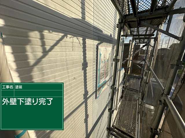 石岡市でおこなった外壁塗装の下塗り1回目が完了しました。