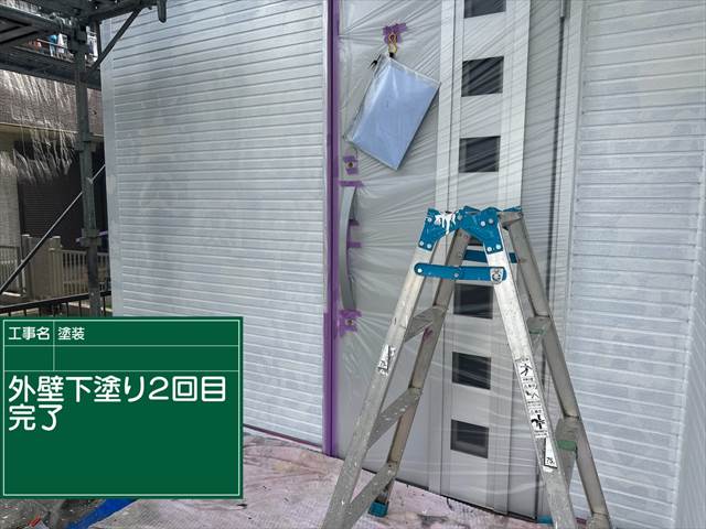 上塗り塗料との密着性を高める下塗りが終わりました!