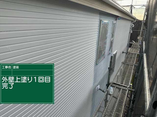 白色の1回目上塗り塗装が完了しました!