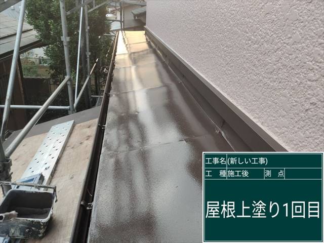 下屋根の塗装も、規定の量と乾燥時間を守っての塗装です。