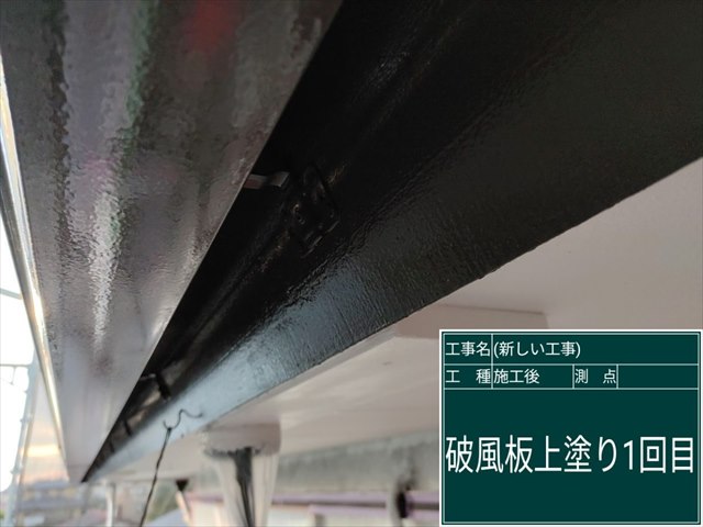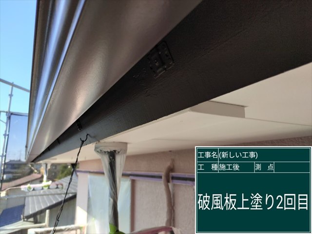 石岡市現地では、破風板は上塗り2回の塗装をおこないました。