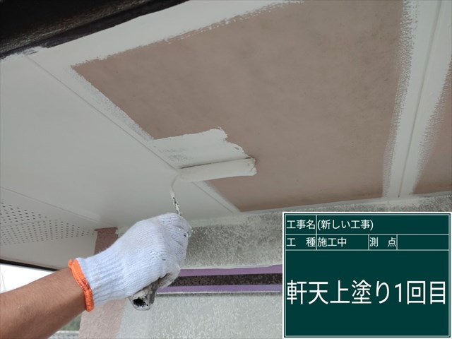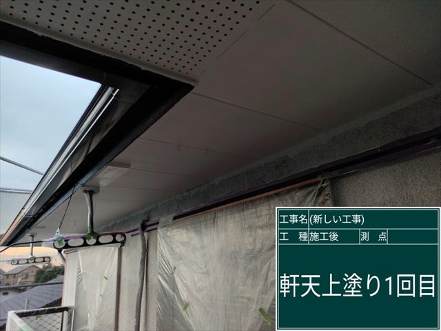 軒天に適した塗料、マルチエースⅡ-JYで塗装をしていきました。