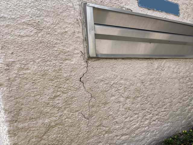 外壁と同じモルタルで出来た門塀にもひび割れがありました。