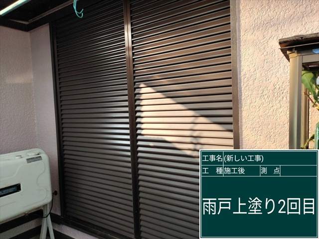 雨戸は凹凸があるので、ムラなく塗装をするために、ローラーのほか刷毛もつかって塗装をしていきました。