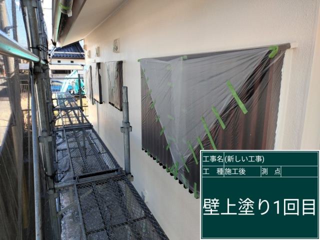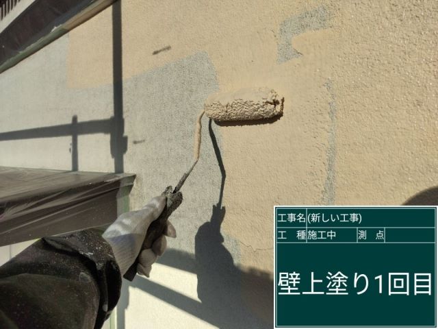 外壁塗装の下塗りが完了したら、乾燥を待ち、上塗りをおこないます。