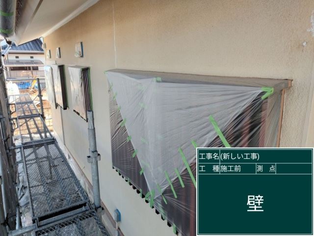 前回の塗装から15年ほど経過したモルタル外壁には、クラックが多数あり、大きなクラックは全て補修が完了した状態です。
