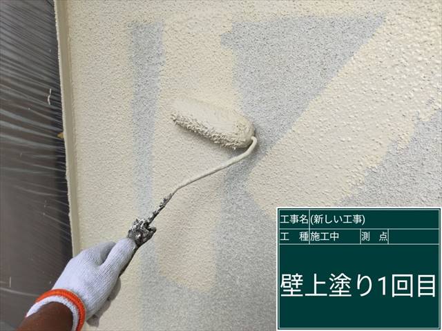 下塗りの乾燥時間を待ってから上塗りをおこなっています。
