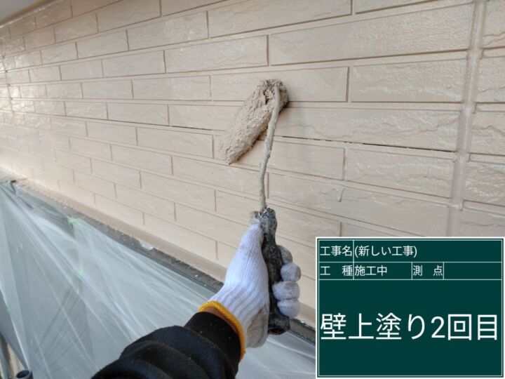 上塗りは2回に分けて丁寧に施工し、塗膜の厚みを均一に仕上げました。