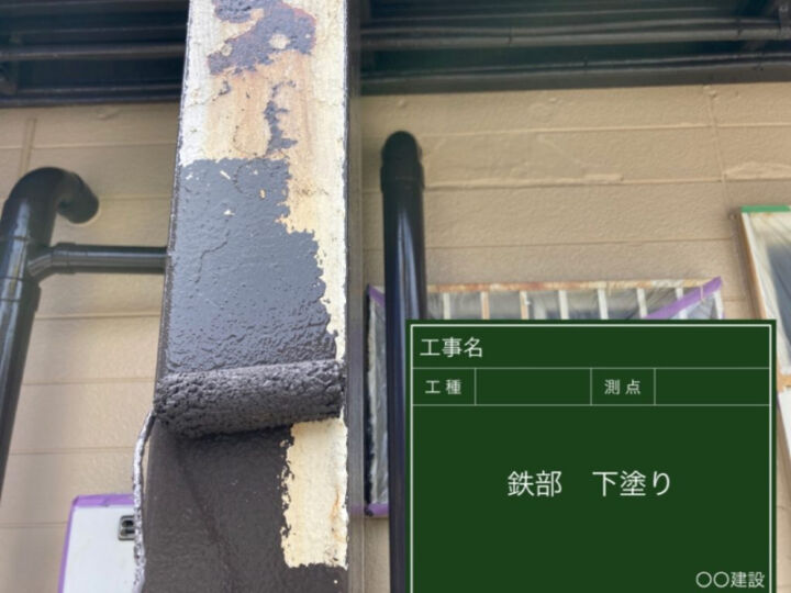 まずは、ケレン作業で下地を整え下塗りをおこないます。