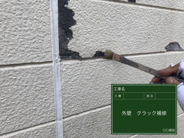 補修材を使用して、クラック箇所には充填し,