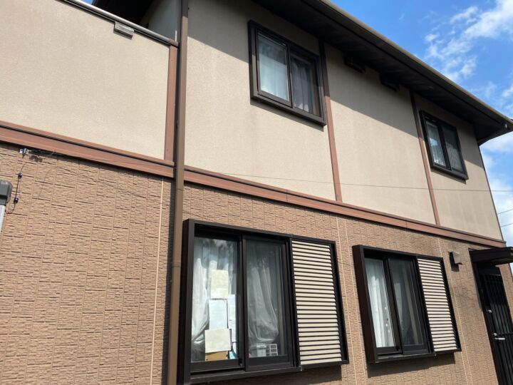 外壁にはコケがついていましたが、チョーキングは起きておらず、比較的きれいな状態でした。