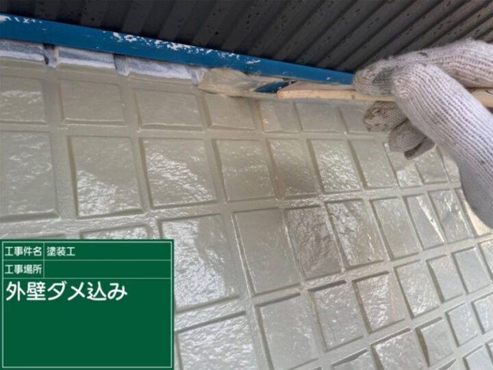 まず、外壁のひび割れをコーキング剤で埋めていきます。
