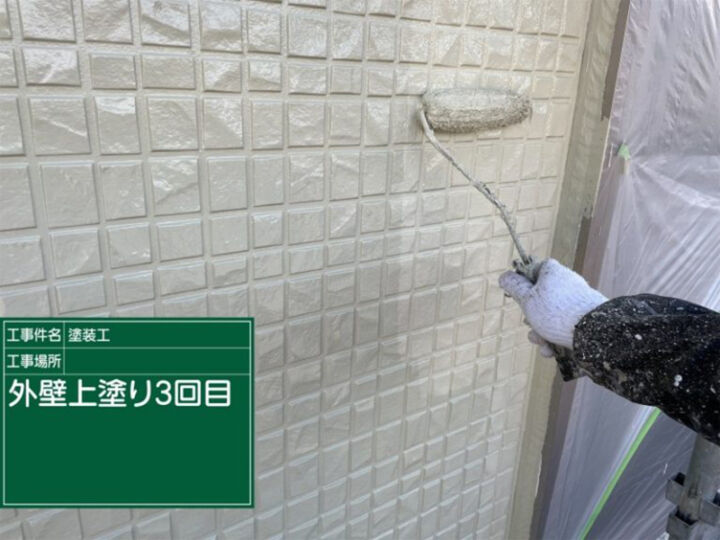 塗装は重ね塗りすることで、塗料の厚みをつくり、艶を出したり、外壁を保護していきます。