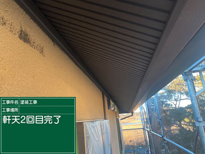 2回塗り重ねて、軒天の施工完了です。