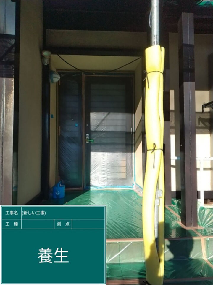 玄関先は出入りがあるので、養生の際に滑り止めシートを敷いていきました。