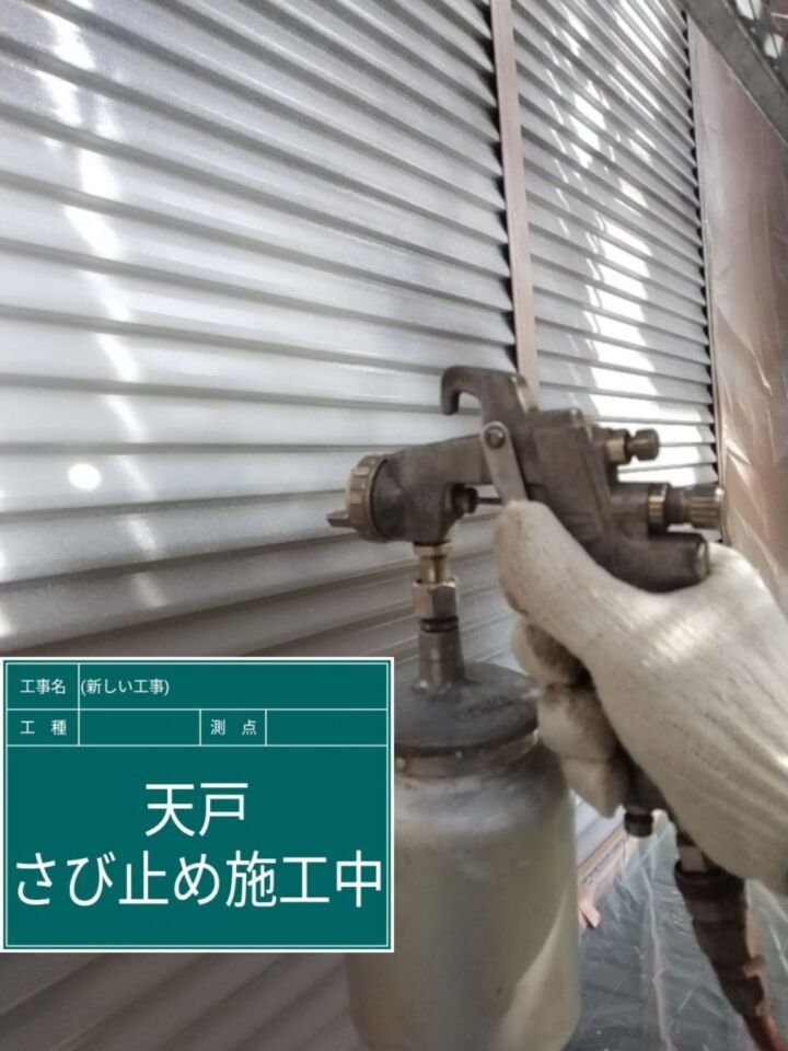雨戸は、広範囲を均一に塗装できるエアブラシで塗っていきます。