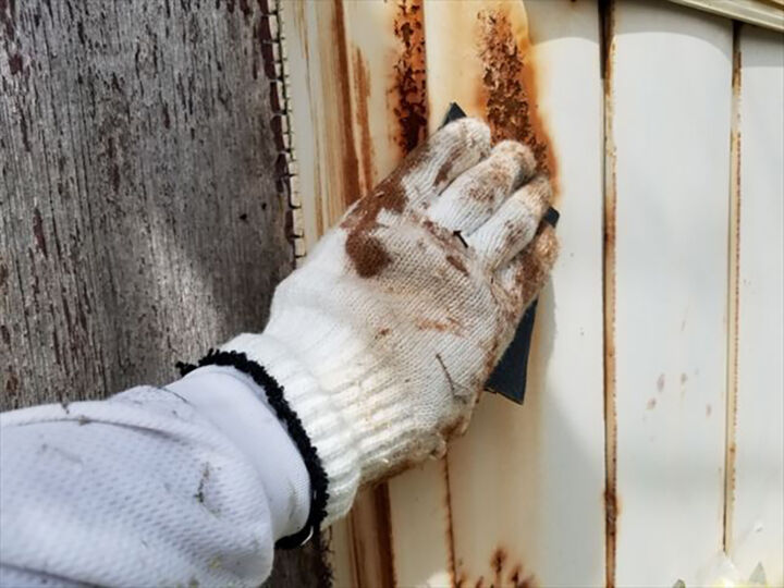 かすみがうら市の漆喰と鉄板サイディングの外壁の高圧洗浄になります。
