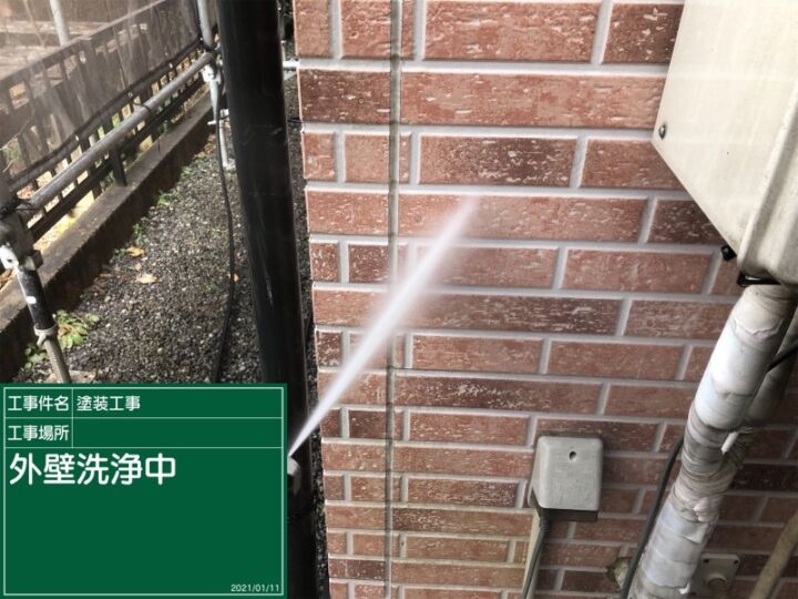 塗装前に、家屋全体を高圧洗浄機で洗っていきます。