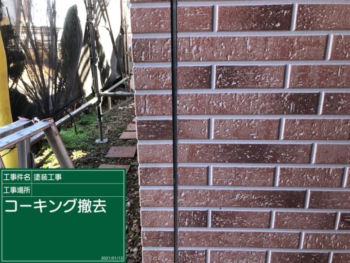 まず、古いコーキングを撤去していきます。