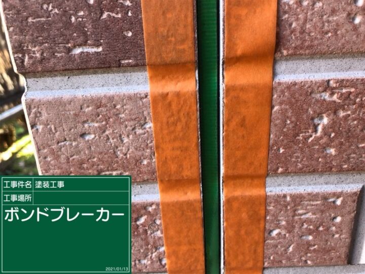 溝の最奥面にボンドブレイカーを貼ることで、側面にのみコーキング剤が付着し2面接着という状態にします。