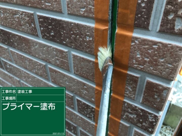 コーキング剤には接着力がないため、プライマーを接着剤代わりにして外壁に密着させます。