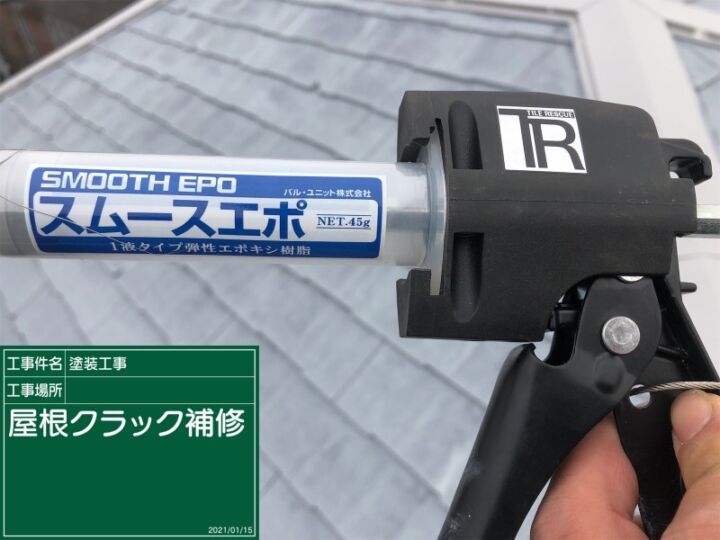 スムースエポというコーキングを使って屋根を補修しました。