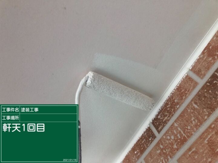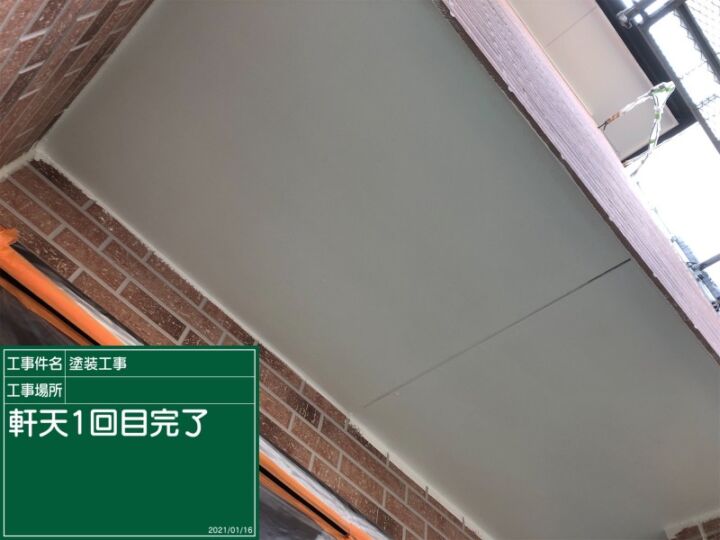 軒天の塗り替えが完了しました。