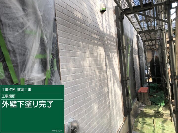外壁の下塗りが終わりました。