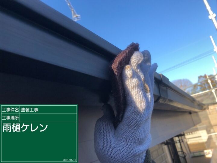 雨樋はポリ塩化ビニル樹脂でできているため、塗装は必要ないのですが、破風板や外壁などは塗り替えたので、雨樋だけ色褪せていると格好がつかないので、美観のために塗り替えます。