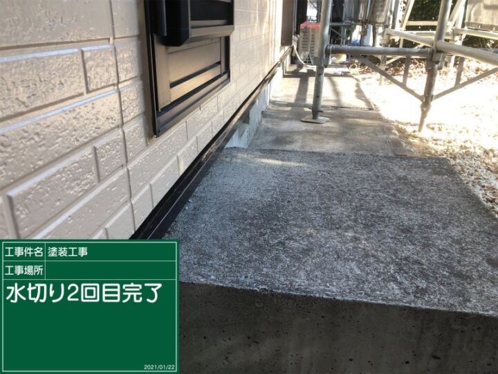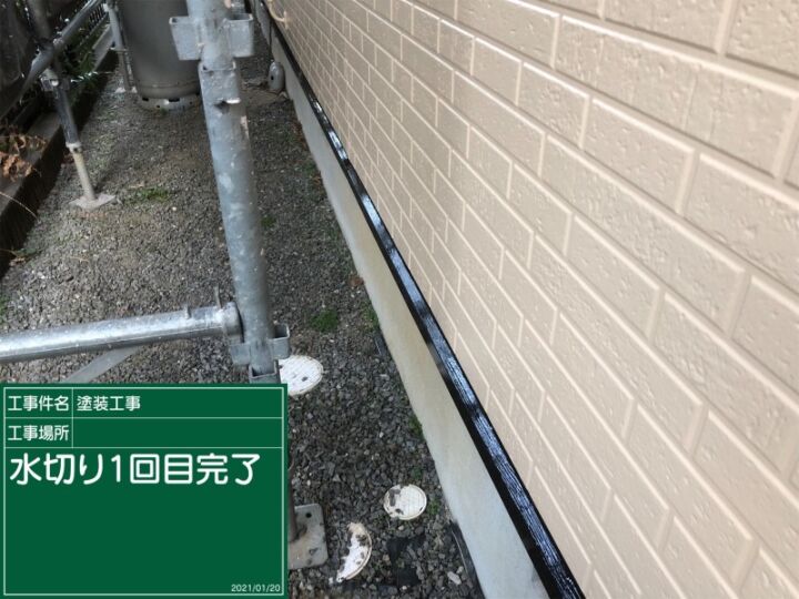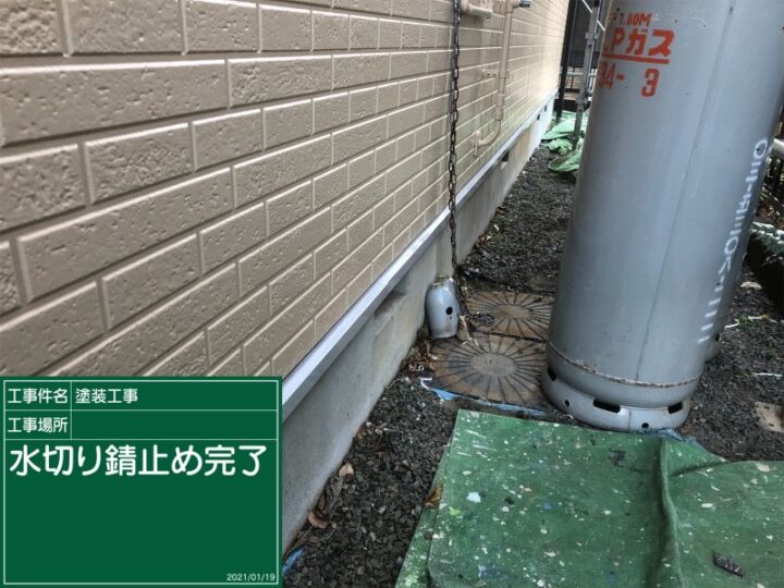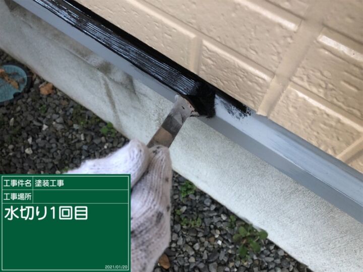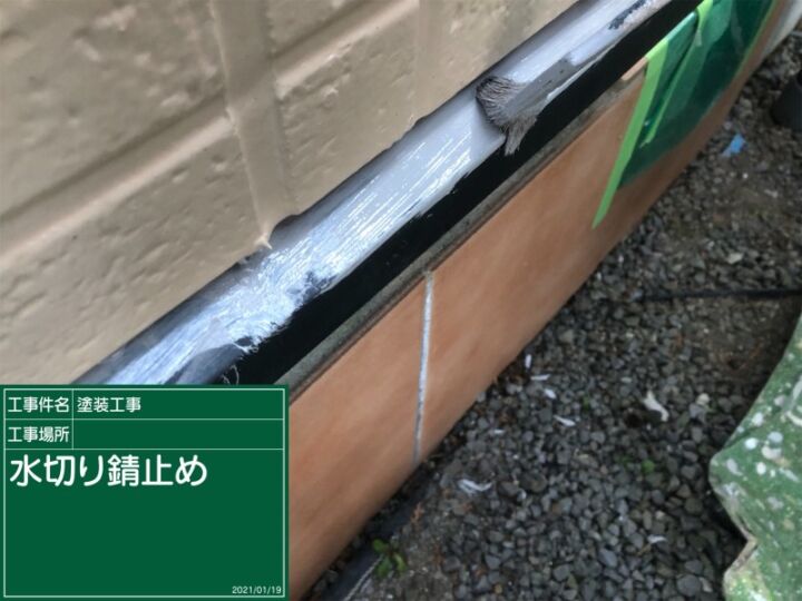 土台と外壁の間の水切りを塗っていきます。