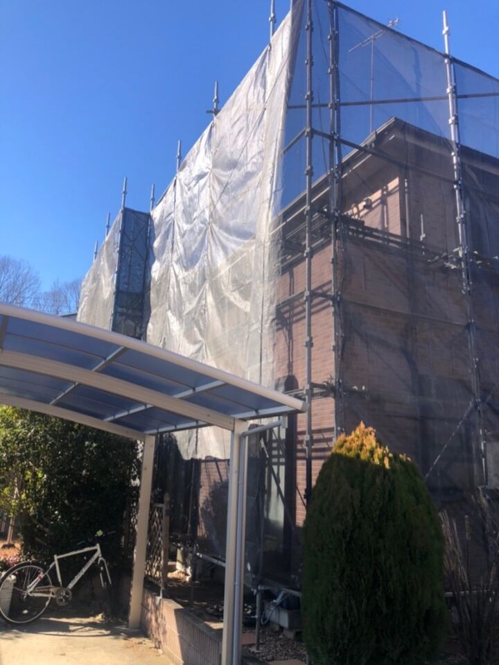 工事の安全確保のために足場を設置します。