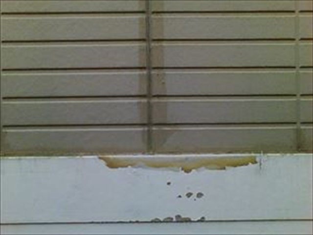 まずは全景、全体的に色褪せているのと、一部分外壁の色が違う箇所が気になります。