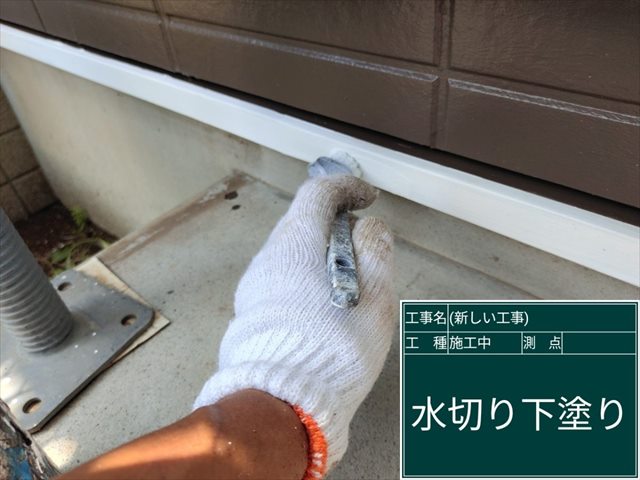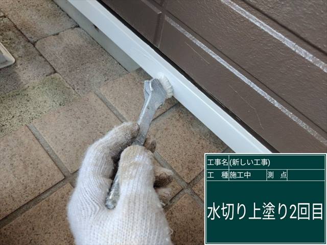 錆止め、上塗りを2回、とおこなって水切り塗装も完了です。