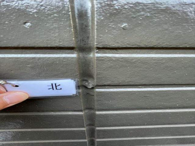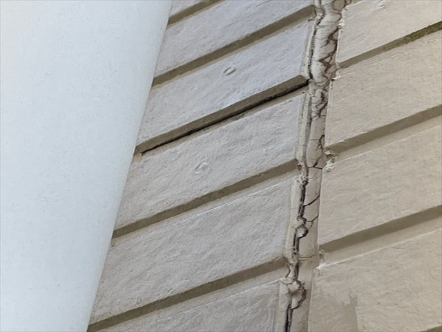 外壁材を繋ぐシーリングは劣化してヒビ割れていました。
