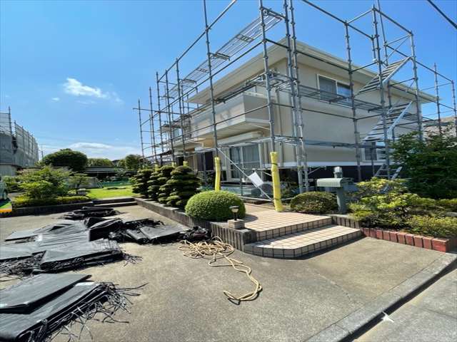足場を立てる前に、近隣の方に施工が始まる旨のご挨拶にお伺いしました。
