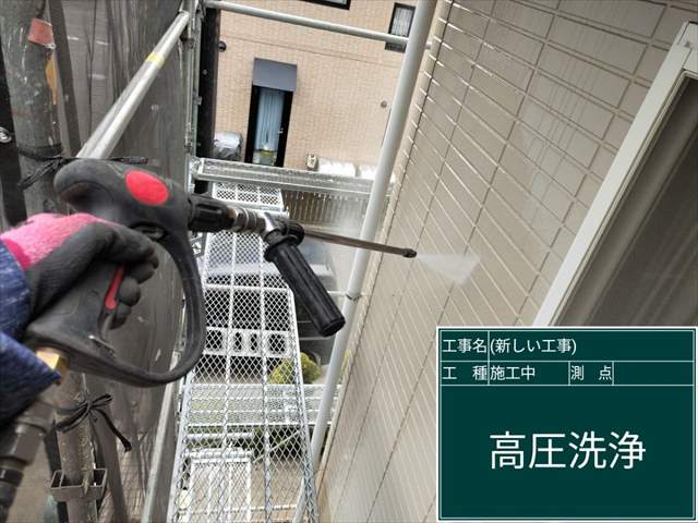 高圧洗浄で長年こびりついた汚れを落としていきます。
