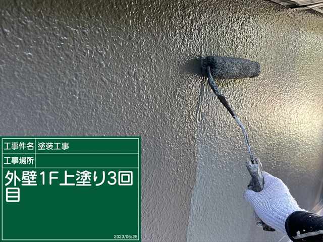 今回のかすみがうら市の外壁塗装現場では、1階の上塗りが3回になりました。