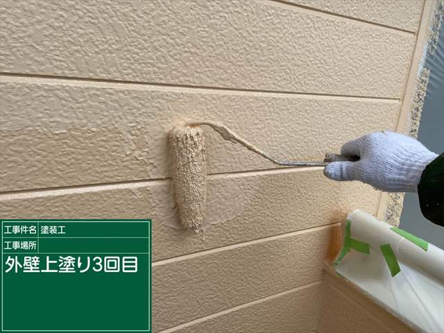 塗装は3回塗り(下塗り・中塗り・上塗り)といわれますが、外壁表面のデザインや、使用するローラーなどで回数は変わってきます。