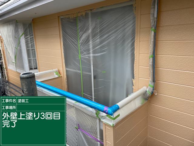 かすみがうら市の外壁塗装現場、3回目の上塗りとなりました。