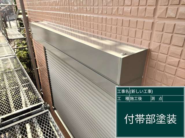 その他、換気フードやシャッターボックスの塗装をおこなって、完了です。