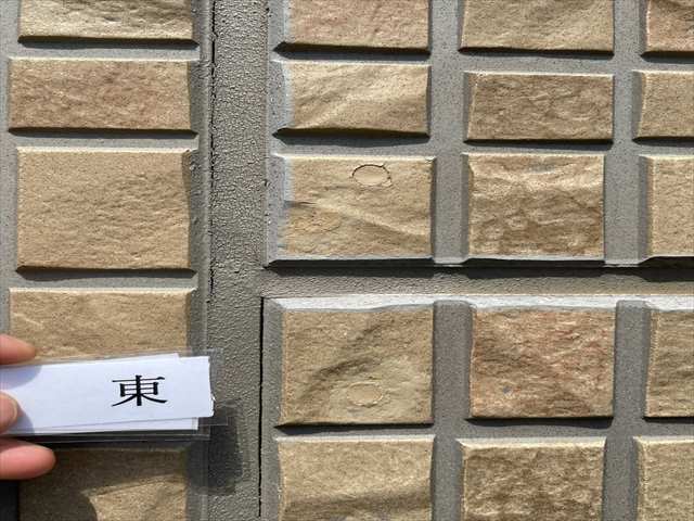 小美玉市お客様宅の外壁はタイル調のデザインでした。