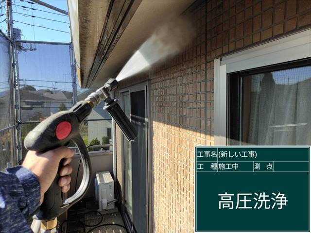 小美玉市の現地、まずはじめにおこなうのは高圧洗浄です。