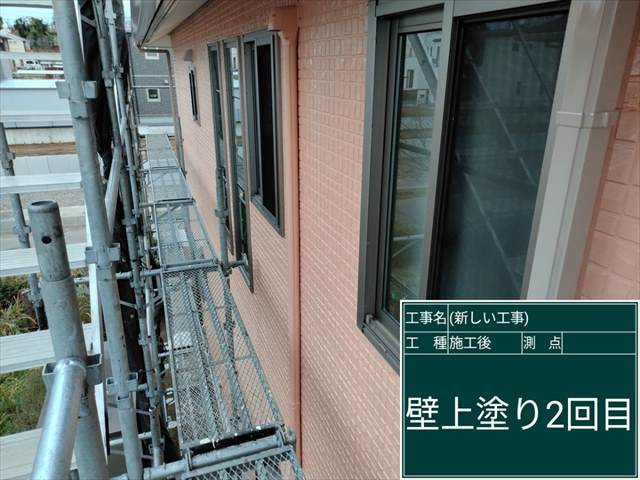 小美玉市外壁塗装の上塗り2回め。