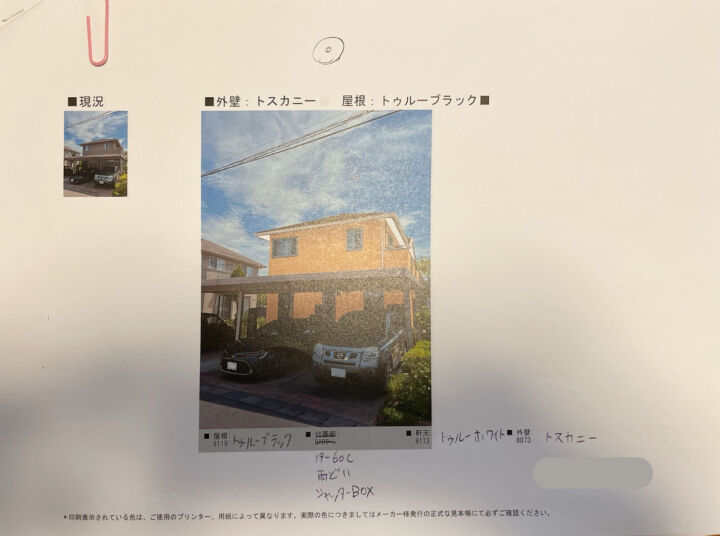 ちょっと反射していますが、こちらが小美玉市現場のカラーシミュレーションです。