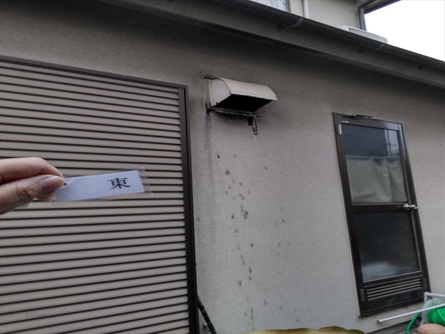 長い間風雨を受けたモルタル外壁です。