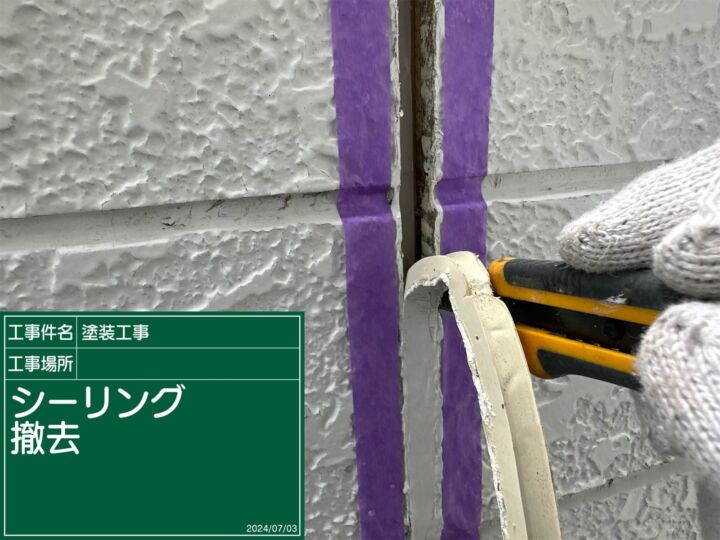 古いシーリングを撤去していると、普段とは違う感触が🤔💭
