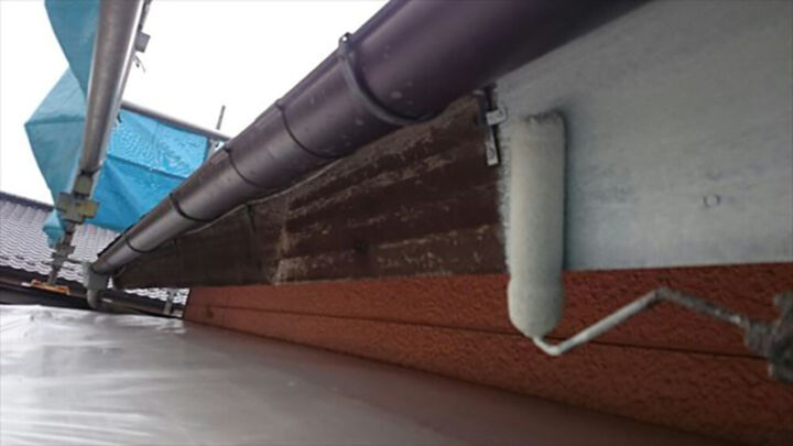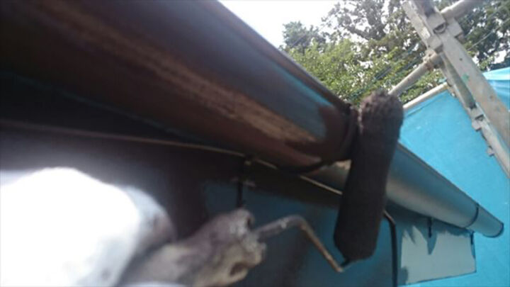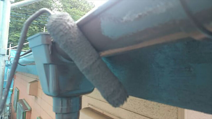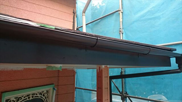 破風板と雨樋の塗装完了になります。