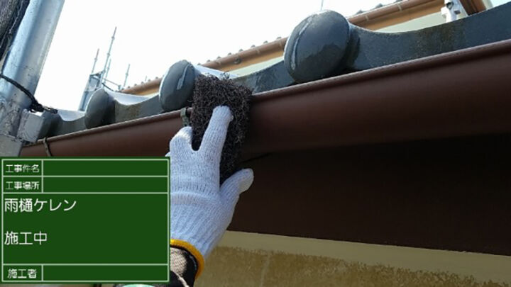 雨樋の塗装の前にも、破風板と同じようにケレンをかけていきました。