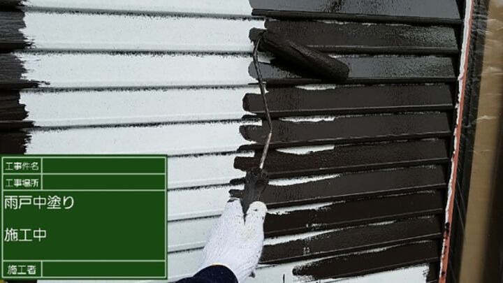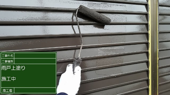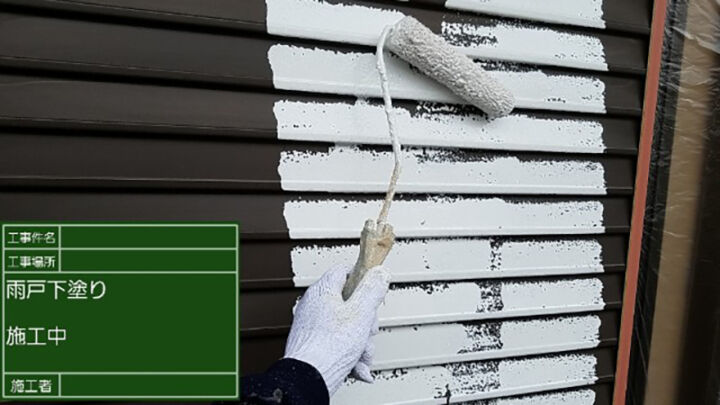 サビ止めの塗料を塗ることで、サビを下塗りの塗膜に付着させ、雨戸の下地にサビがうつらないようにしていきます。