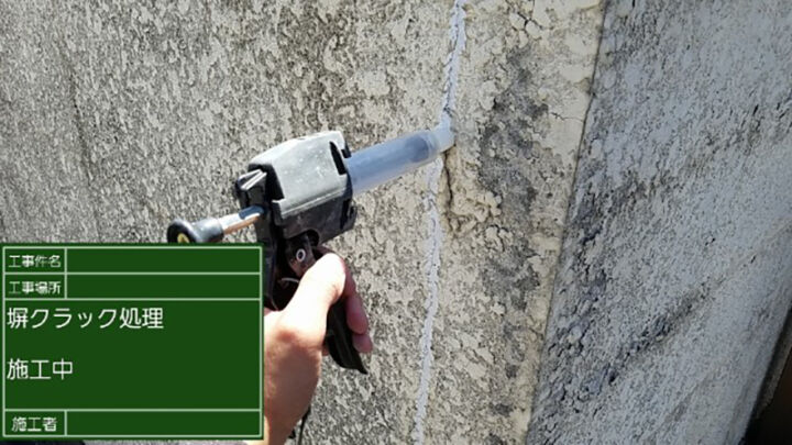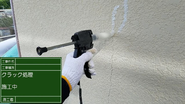 クラック(ひび割れ)の補修の様子です。
